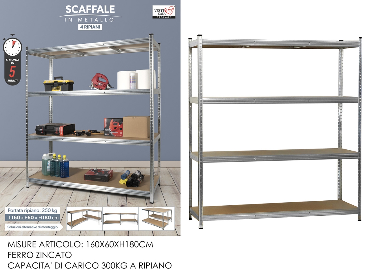 SCAFFALE MET.4RIP.MDF 160X60X180 612610